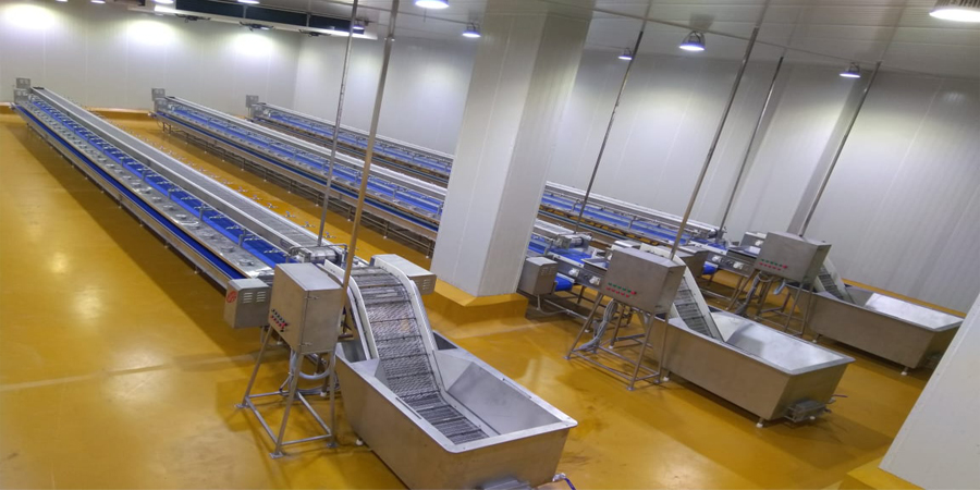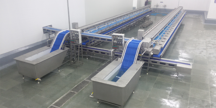 This equipment helps the labours to peel the head of the shrimp and collect the headless material for further process. It consists of three conveyors running at various heights. The center conveyor is merry-go round conveyor. The washed raw materials are fed in this conveyor through infeed conveyor and feeding chute.