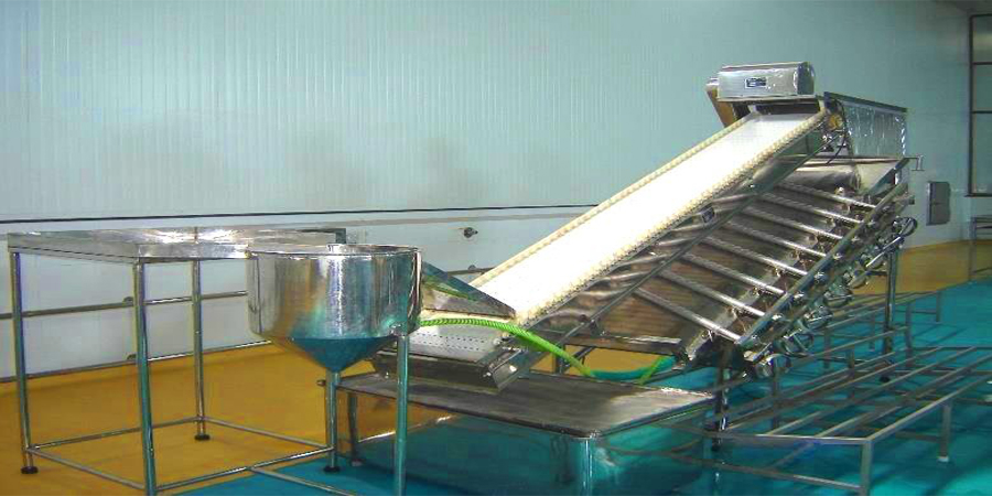 Peeled and Undeveined Shrimps Grading system is used to reduce labour effort in grading and improving grading accuracy. This system comes along with a PUD washing system at feeding end. It is made up of Stainless Steel to ensure high durability and corrosion resistance. The washed shrimps are transferred to grading machine through elevating conveyor. Thegraded PUD shrimps can be collected separately at delivery end according to sizes.
