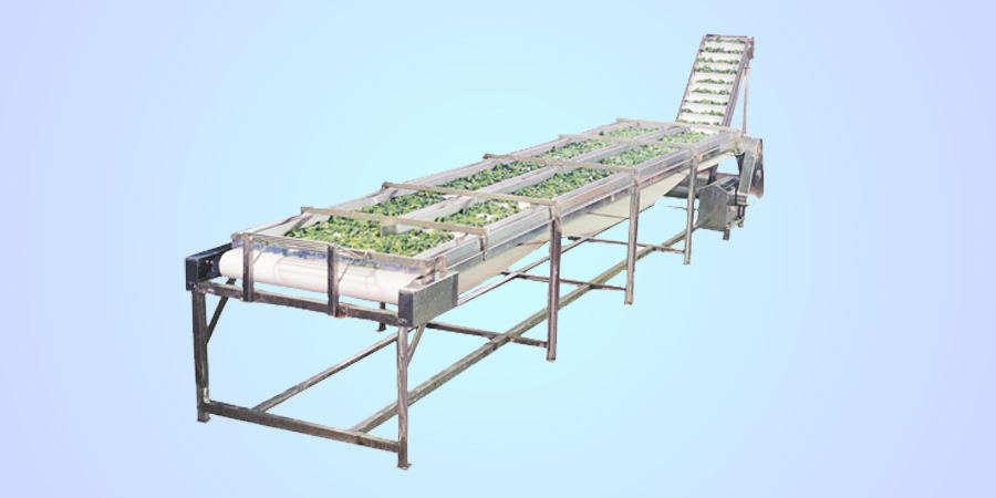After washing, the vegetable needs to be inspected. For this purpose, we provide inspection conveyor over which the vegetables are spread over. The inspecting labours stand on either side of the conveyor and examine the material. The speed of the conveyor can be adjusted according to labour’s pace. The bad quality vegetables are discarded.