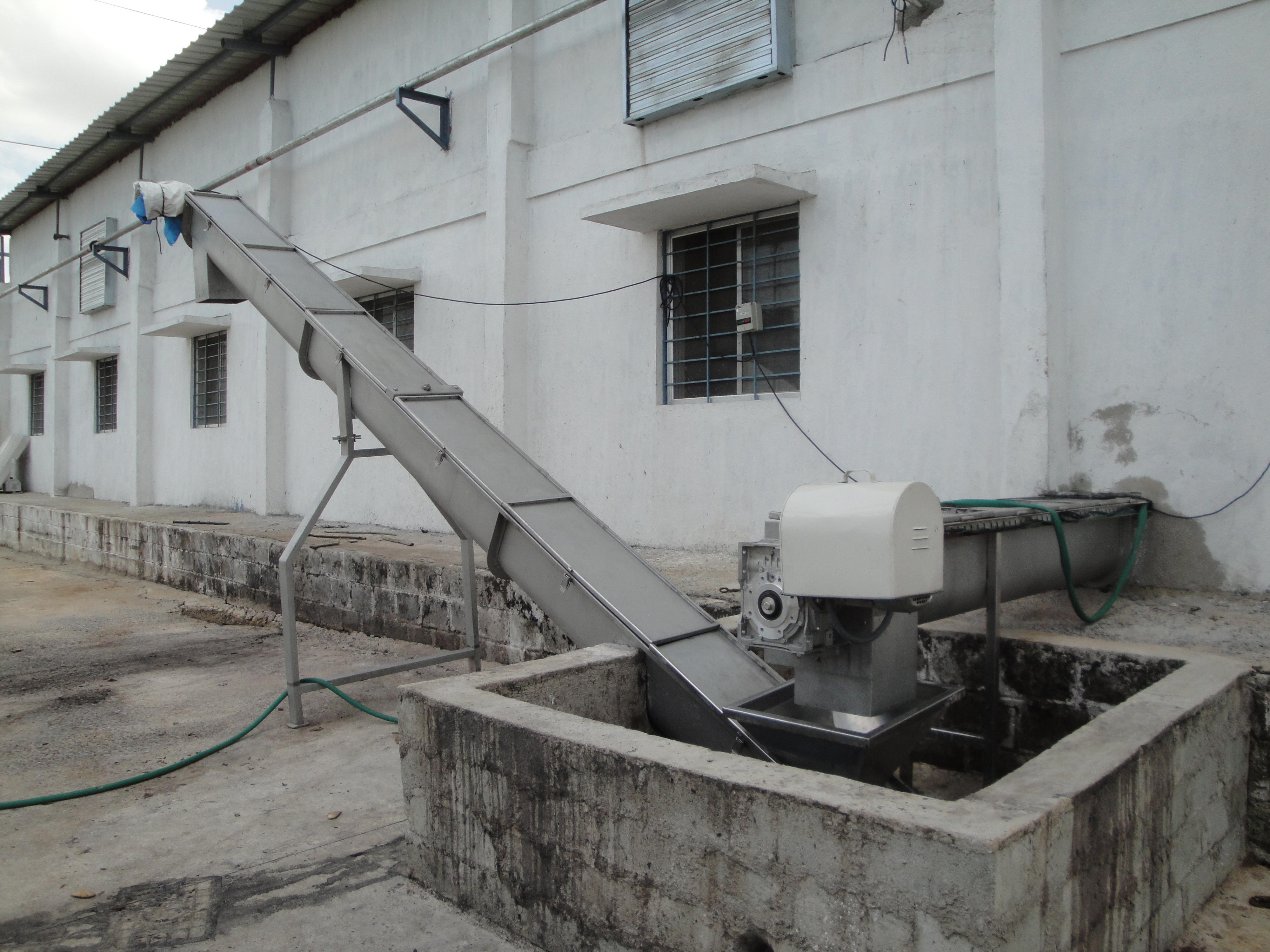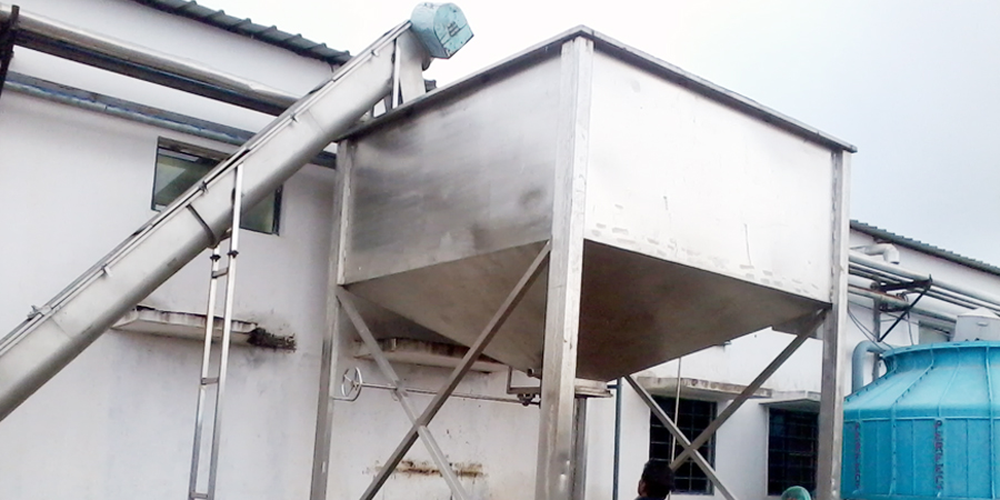 Stainless Steel Screw Conveyors find vast applications in Food industries. We manufacture all types of screw conveyors according to customer’s needs. Each segment of screw leaf is precisely fabricated and set according to speed and feed. This type of elevated screw conveyor can be used to transfer waste material from processing conveyors to a hopper then to truck or directly to truck for disposal.